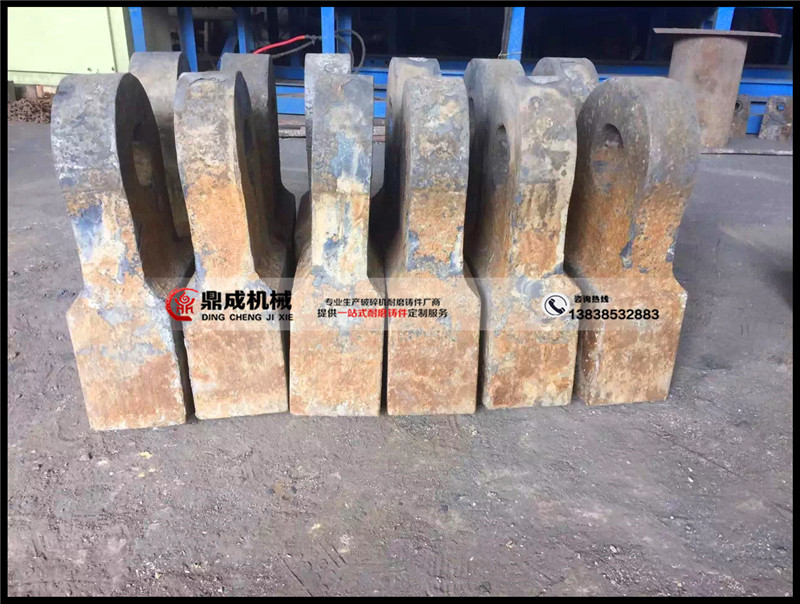 鼎成細碎機錘頭采用高鉻26合金、高鉻高釩28合金、高鈦35合金,或者根據(jù)工況條件特殊配料,根據(jù)客戶來圖來樣定做各類異形細碎機錘頭。鼎成高鉻錘頭做工細膩,配料嚴謹,熱處理到位,細碎機高鉻錘頭使用壽命比同類產(chǎn)品耐磨50%以上。